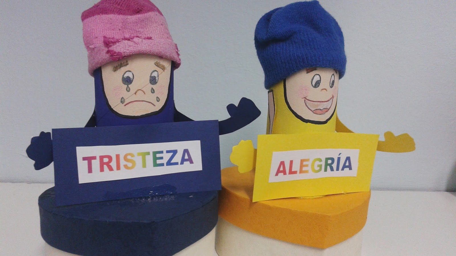 Las emociones están encima de una cajita en la que se pueden introducir objetos, imágenes o ideas sobre la emoción correspondiente.